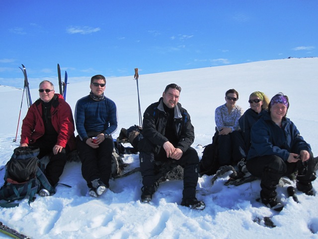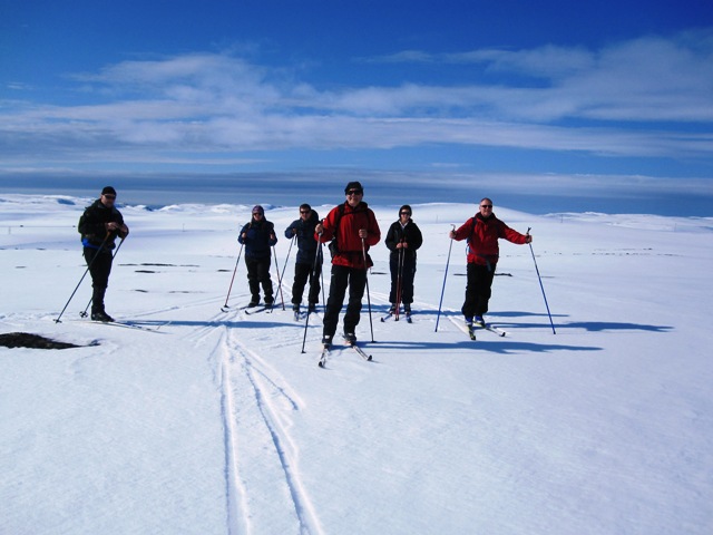 Vi har allerede lagt tre arbeidsdager bak oss og årets påskeferie er blott et minne. I forrige bulleteng skrev vi at vi skulle avslutte årets påskeferie på Skjånes ved å gjennomføre en skitur 1. påskedag fra reingjerdet og tvers over Nordkynnhalvøya til Skjånes. Turen ble en minnerik opplevelse, og den traseen vi valgte ble nok på omtrent 3 mil. I strålede vær med sol fra nærmest skyfri himmel og mange plussgrader la følget som besto av Sture, Sissel. Ingvild. Tom Eirik, Ronny, Hanna og jeg i vei på ferden. Vi startet klokken 12.30 og var vel hjemme på Skjånes ca kl seks om ettermiddagen. Sjøl om vi nesten ikke har hatt ski på beina i år, gikk turen overraskende lett, og matpauser med medbrakt niste og drikke ga ekstra piff og overskudd av energi. Den største utfordringa var dog siste etappe med utforkjøringer fra Storvarden og ned Strupen. Nedkjøringa i Strupen voldte såpass store problemer med hensyn til føret og vaklevorne bein, at strekninga ble forsert med ytterst varsomhet med tråkking ned de bratteste skråningene. Nedkjøringa i selve Strupen som normalt tar ca. fem minutter ble denne gangen til en strabasiøs tur på over halvtimen, men vi kom oss da alle ned uten synlige skader etter mange stygge fall i de bratte dalsidene. Dessverre finnes ingen bilder fra den siste delen av turen, da vi hadde nok med å klamre oss fast til underlaget. Vel én time etter hjemkomst, var ho mor og jeg på hjul mot Vadsø for å bruke siste feriedag til videre jobbing med kjøkkenet…